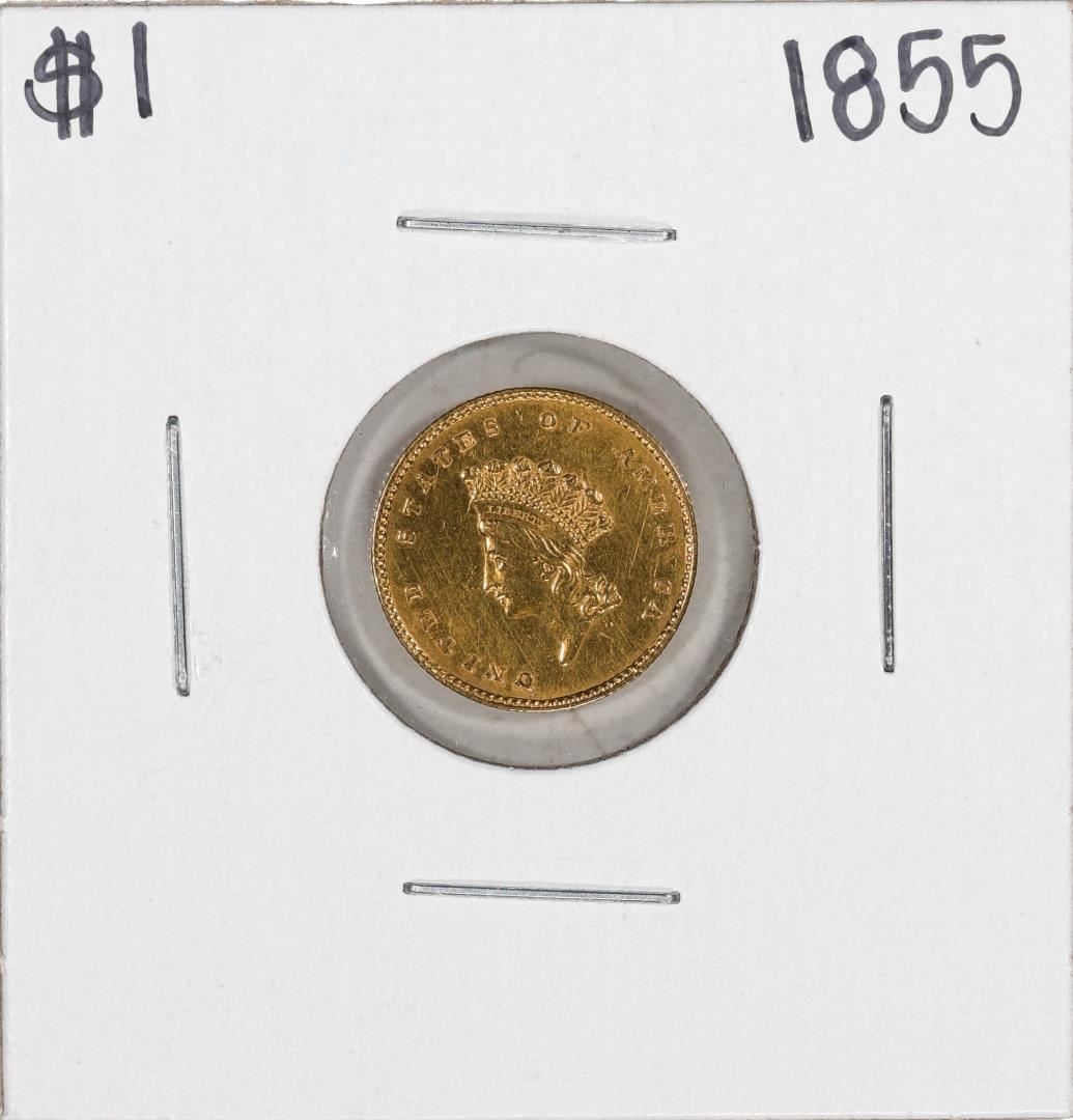 One 1855 Type 2 $1 Indian Princess Head Gold Coin.