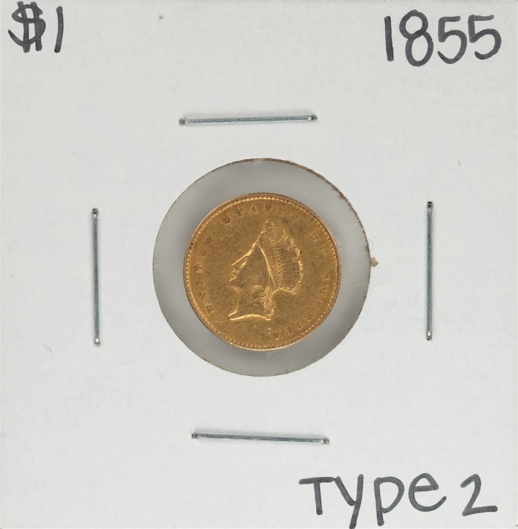 One 1855 Type 2 $1 Indian Princess Head Gold Dollar Coin.