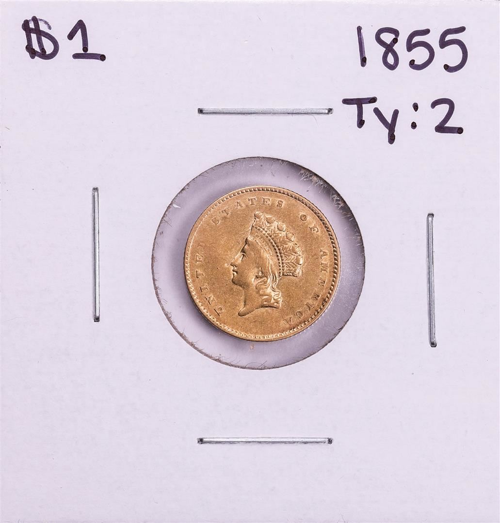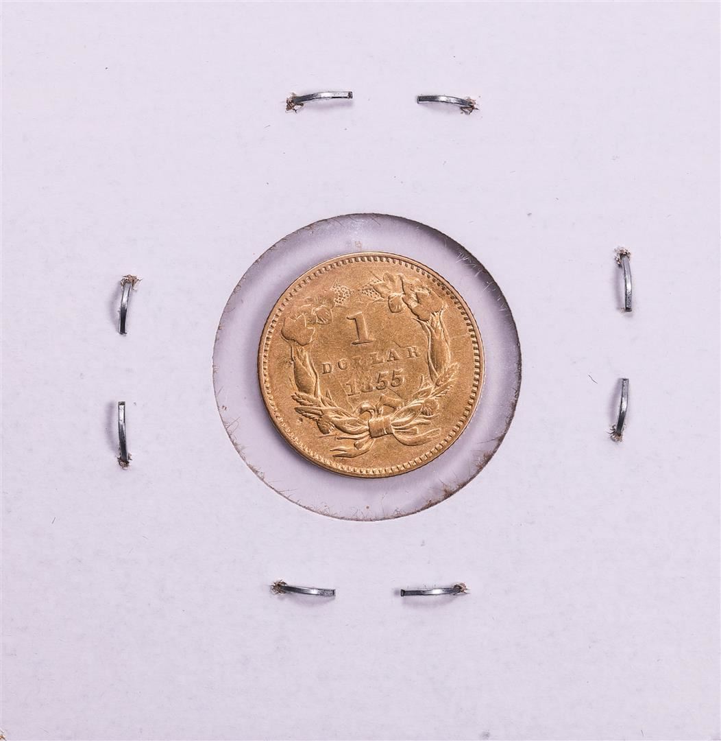 One 1855 Type 2 $1 Indian Princess Head Gold Dollar Coin.