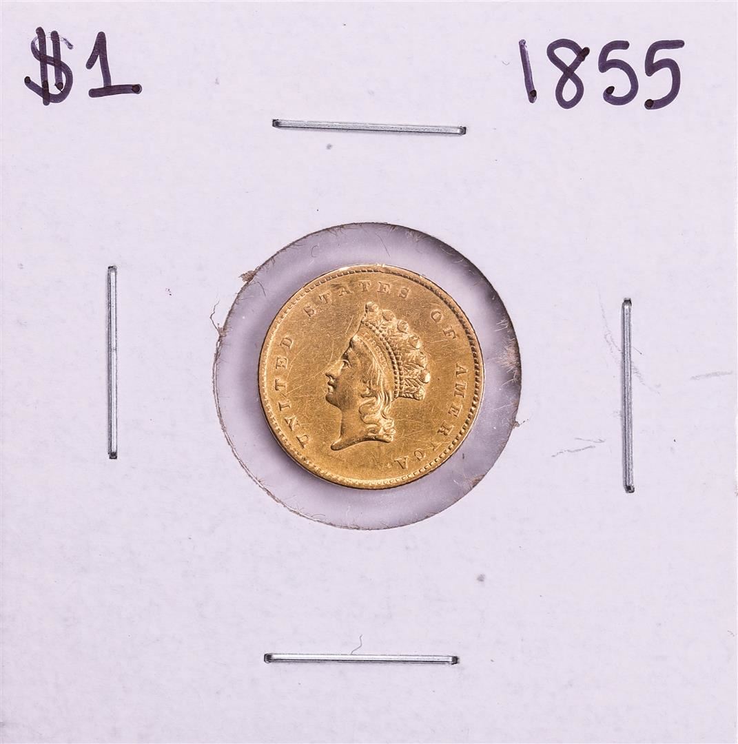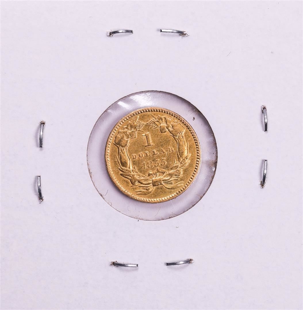 One 1855 Type 2 $1 Indian Princess Head Gold Dollar Coin.