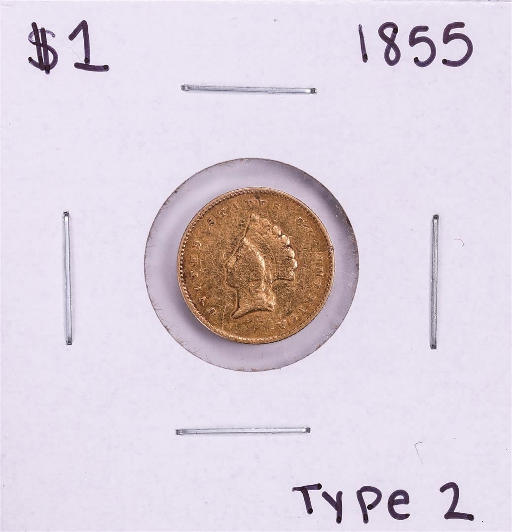 One 1855 Type 2 $1 Liberty Head Gold Dollar Coin.