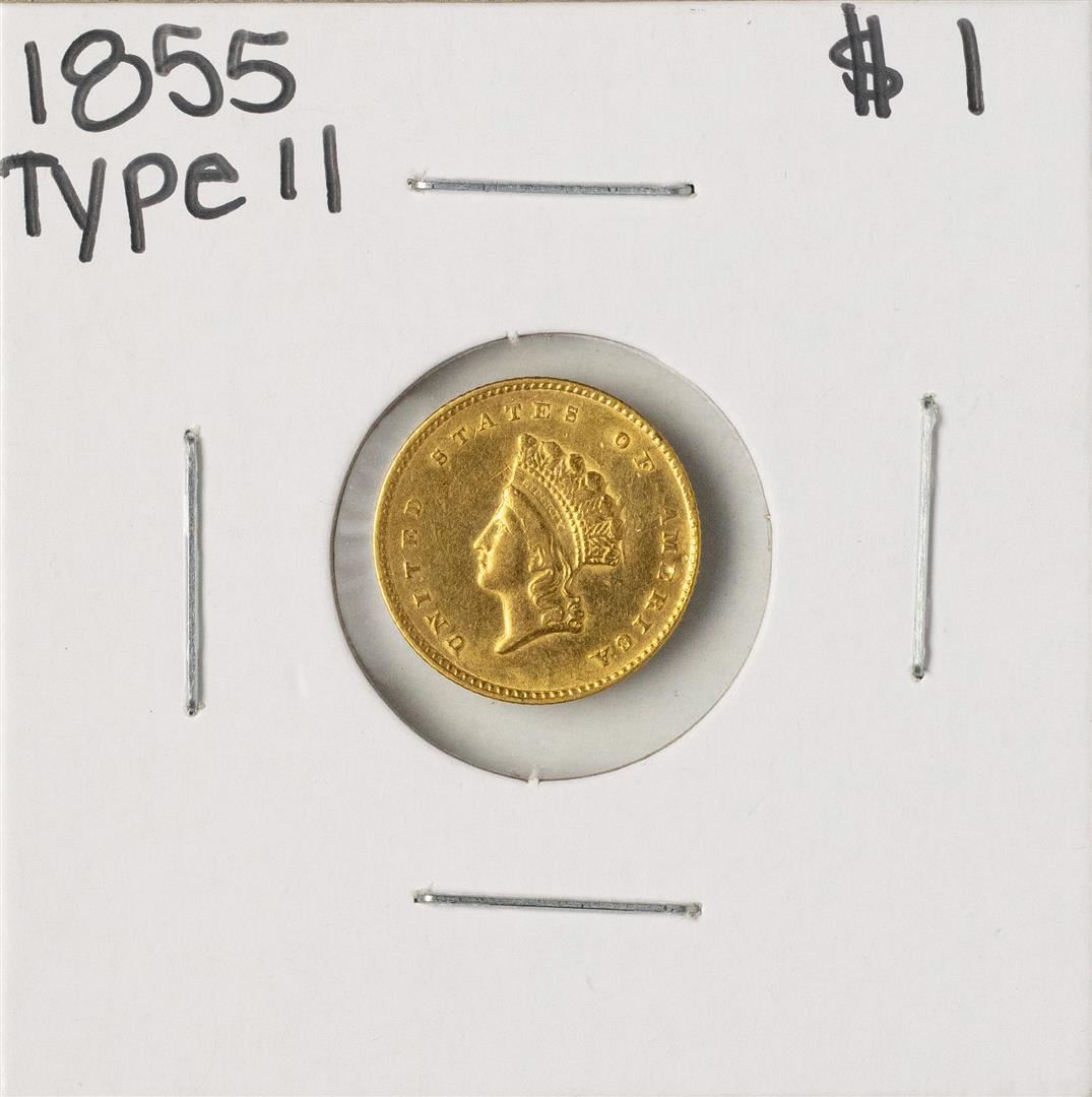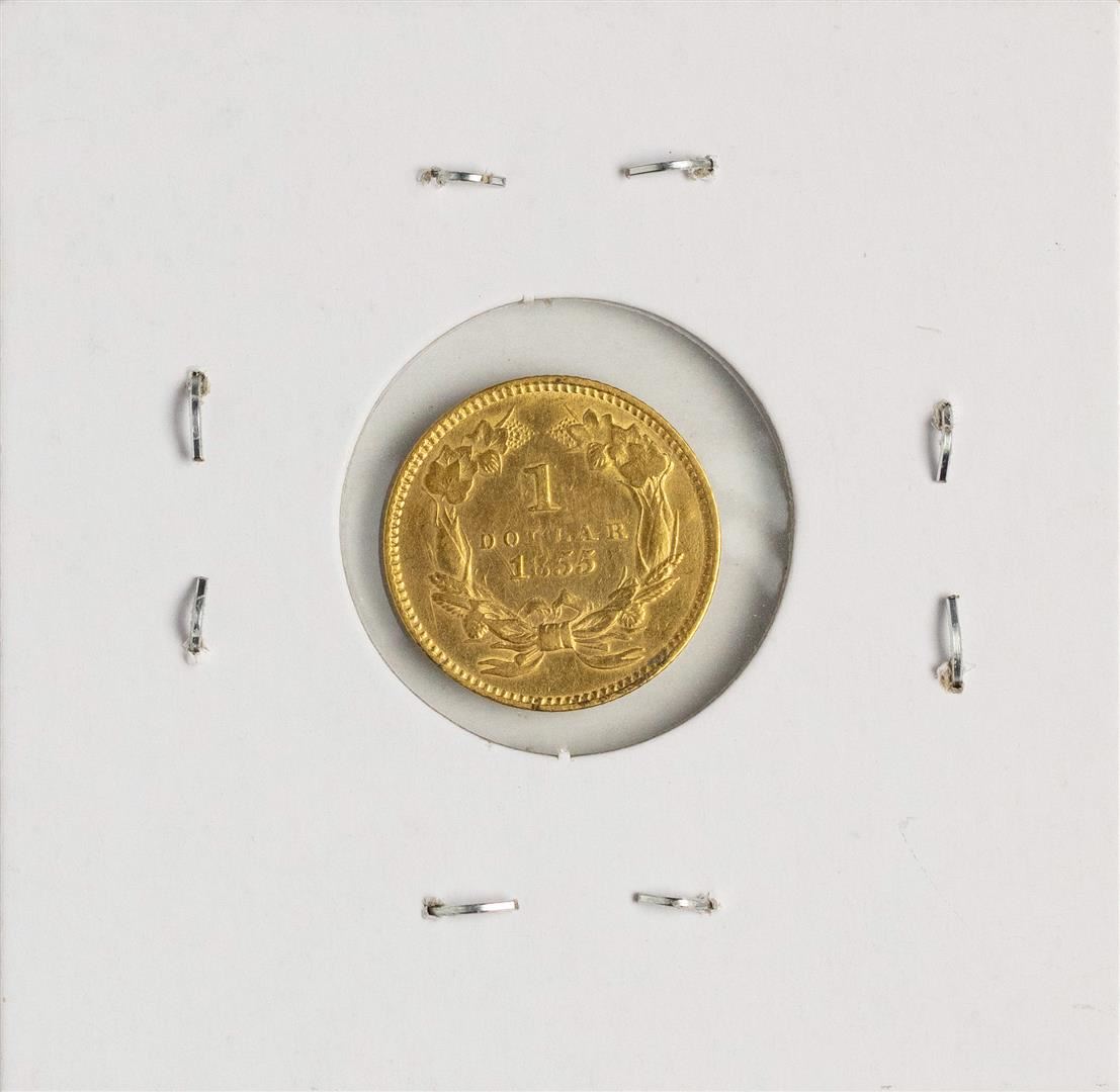 One 1855 Type II $1 Indian Princess Head Gold Dollar Coin.