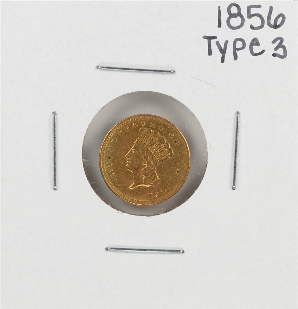 1856 $1 Type 3 Indian Princess Head Gold Dollar Coin -Damaged