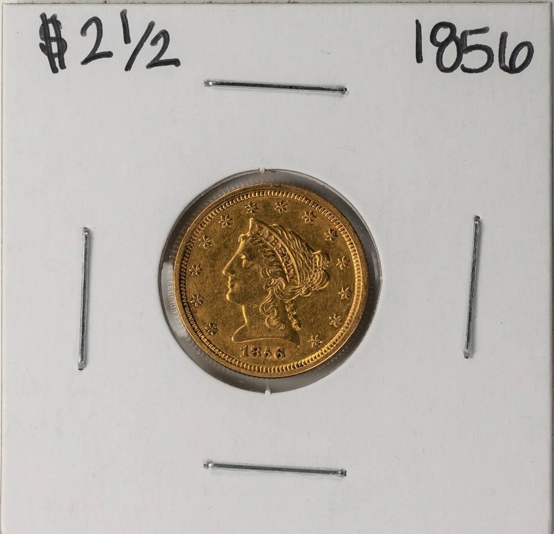 One 1856 $2 1/2 Liberty Head Quarter Eagle Gold Coin.