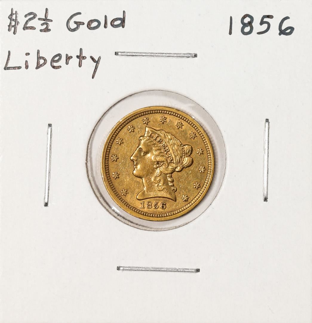 One 1856 $2 1/2 Liberty Head Quarter Eagle Gold Coin.