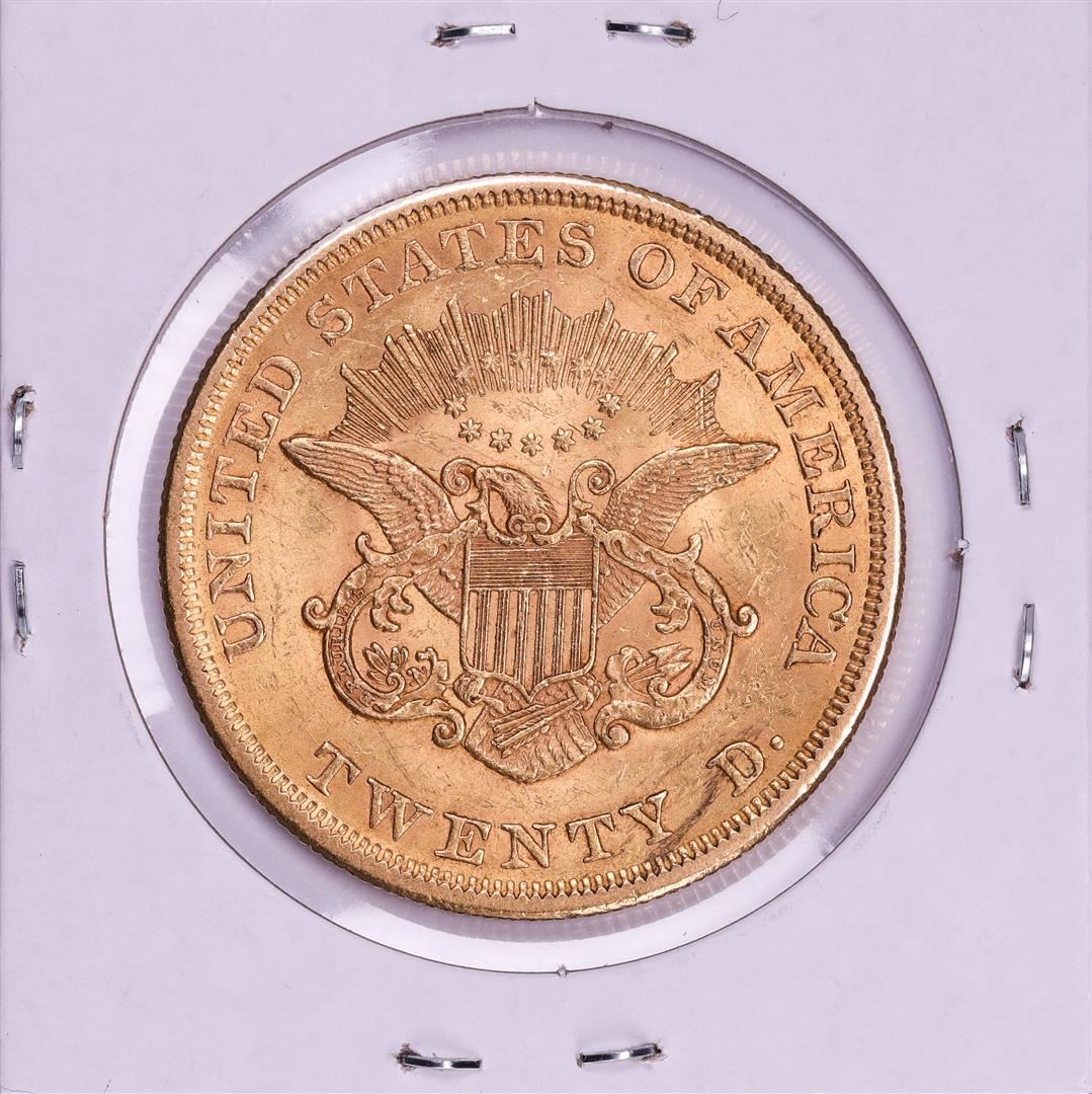 One 1856 $20 Liberty Head Double Eagle Gold Coin.