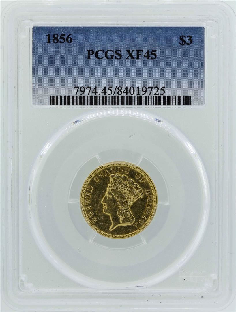 One 1856 $3 Indian Princess Head Gold Coin PCGS XF45. PCGS Graded.