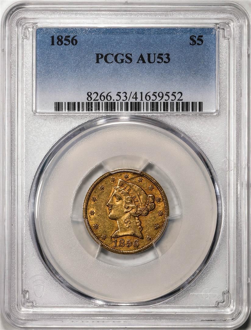 One 1856 $5 Liberty Head Half Eagle Gold Coin PCGS AU53. PCGS Graded.