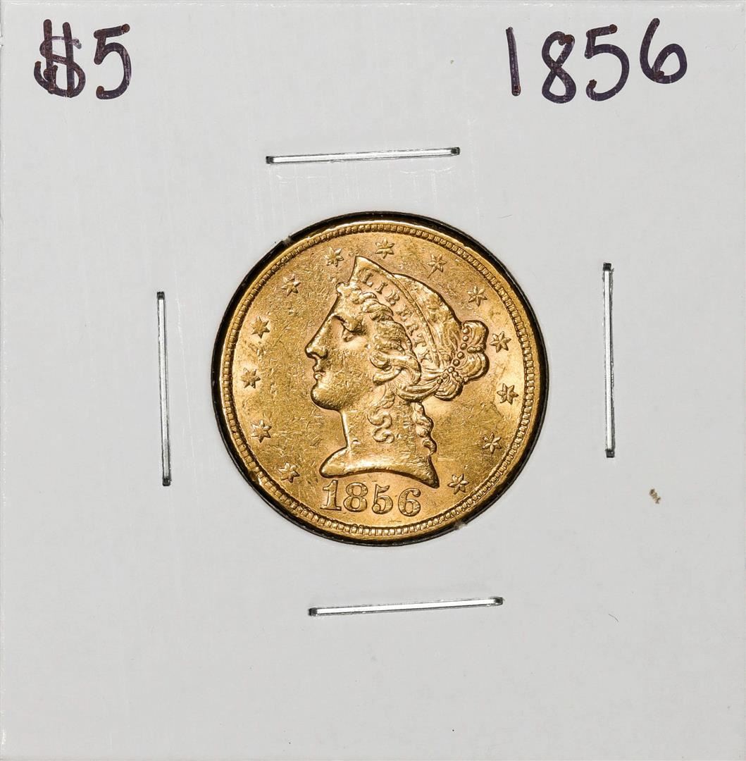 One 1856 $5 Liberty Head Half Eagle Gold Coin.