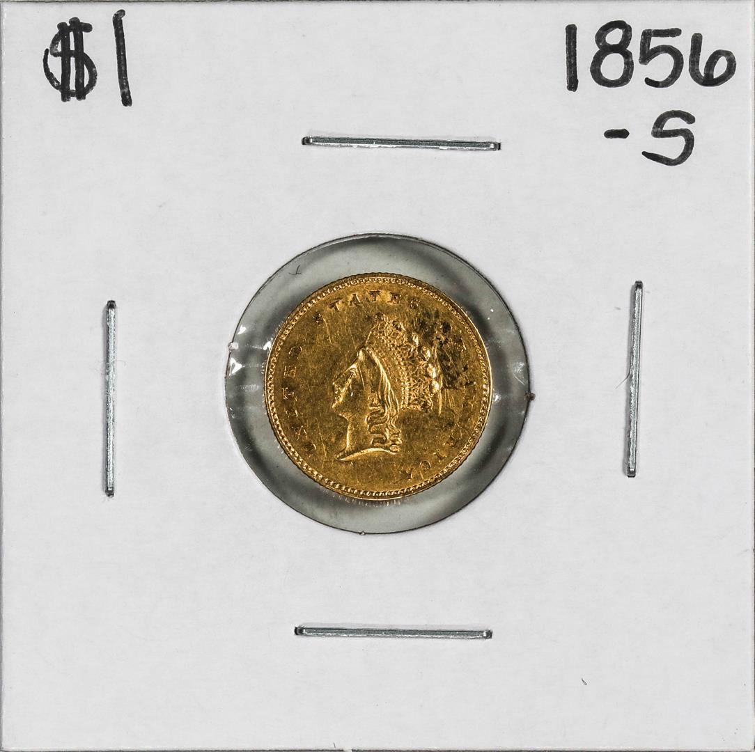 One 1856-S $1 Type 2 Indian Princess Head Gold Dollar Coin.