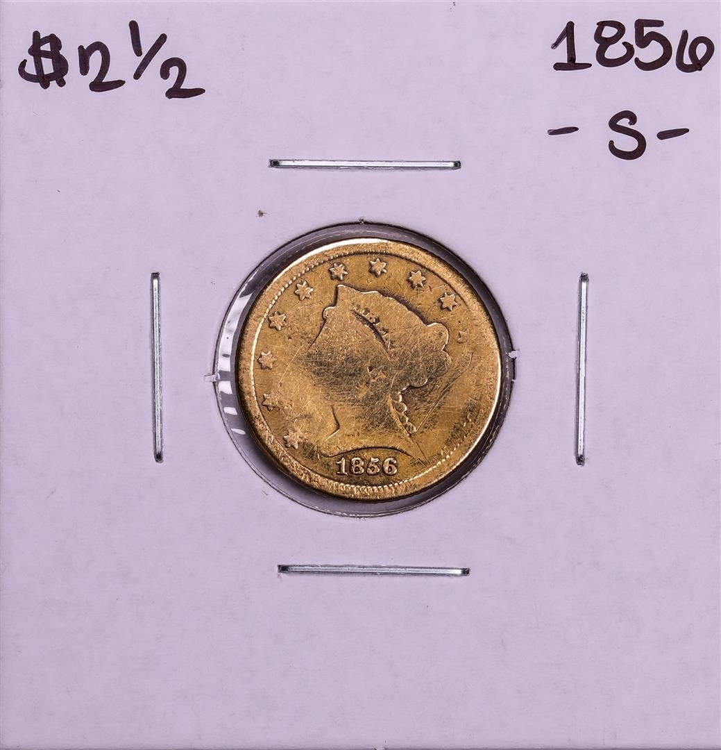 One 1856-S $2 1/2 Liberty Head Quarter Eagle Gold Coin.