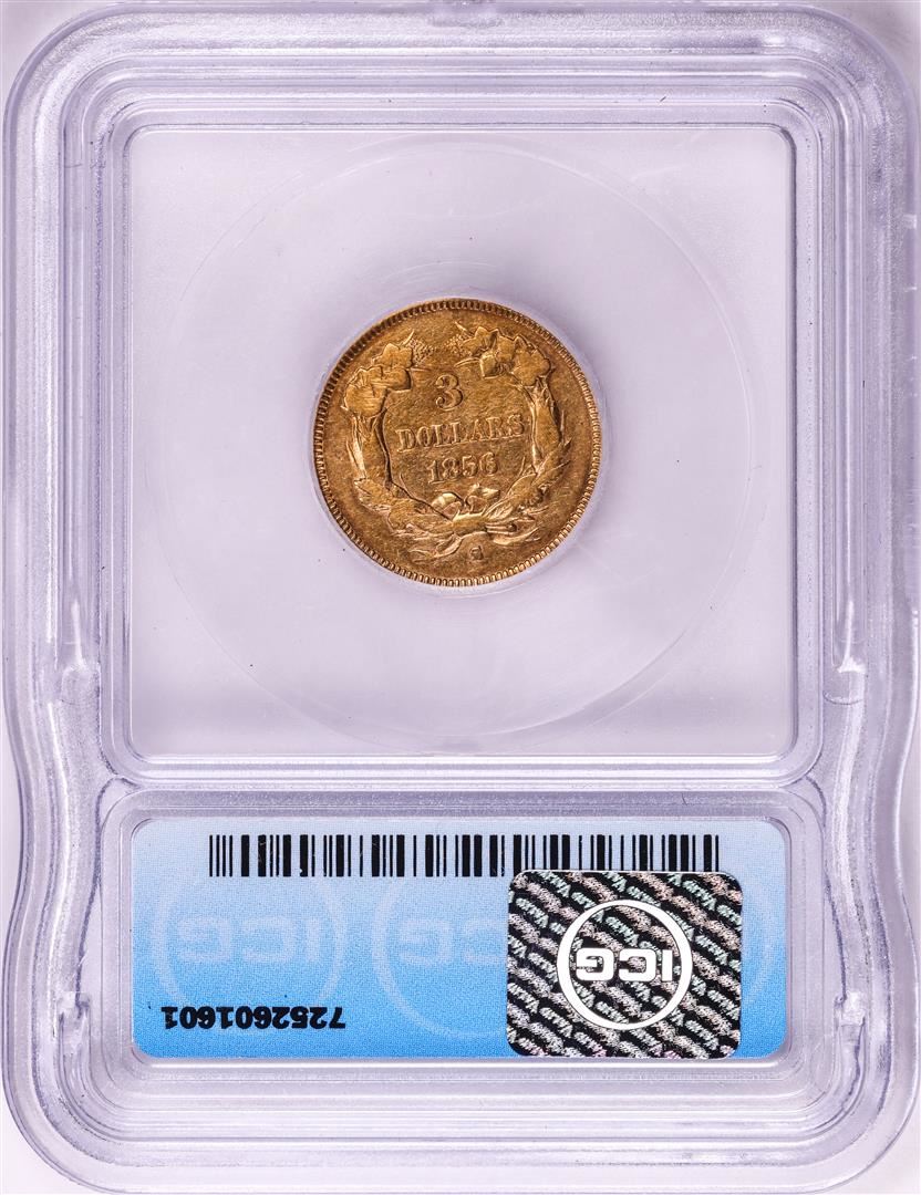 One 1856-S $3 Indian Princess Head Gold Coin ICG EF40. ICG Certified.