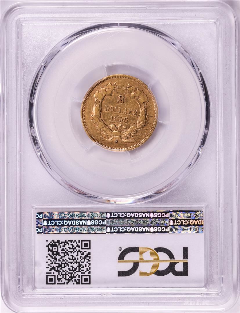 One 1856-S $3 Indian Princess Head Gold Coin PCGS VF35. PCGS Graded.
