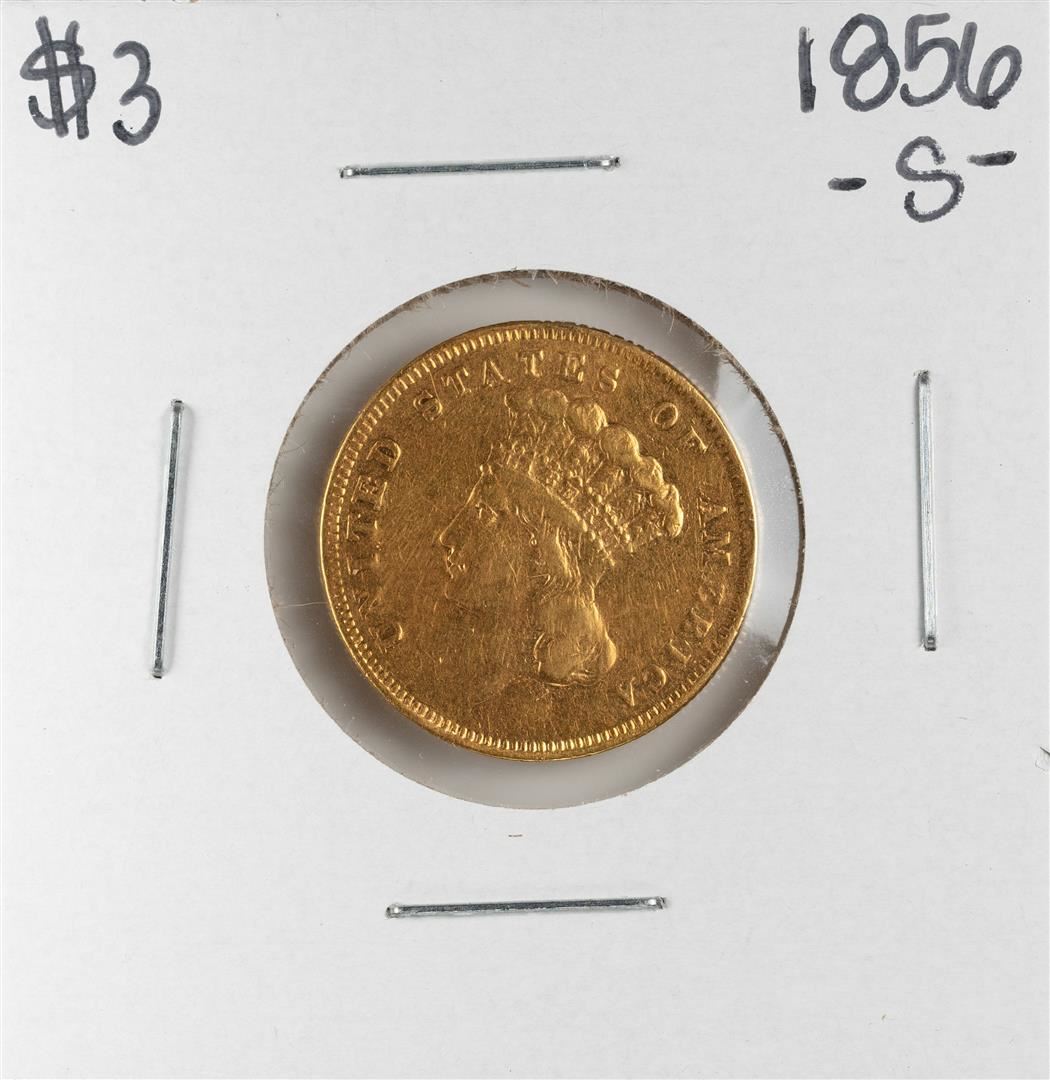 One 1856-S $3 Indian Princess Head Gold Coin.