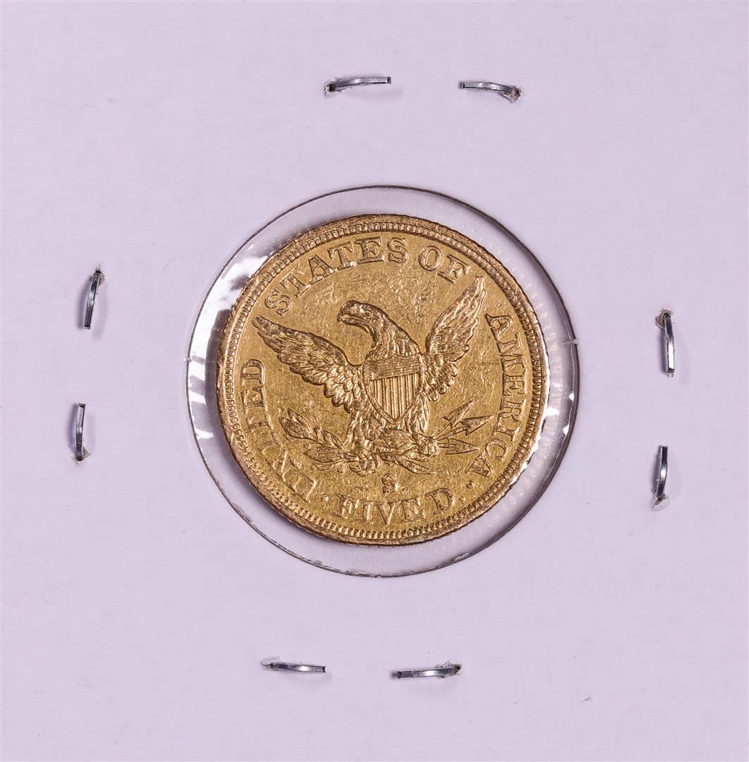 One 1856-S $5 Liberty Head Half Eagle Gold Coin.