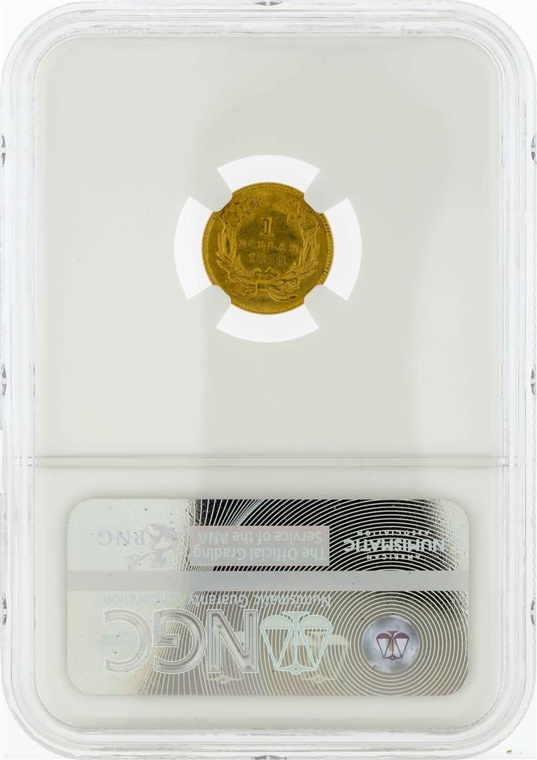 One 1856 Slanted 5 $1 Indian Princess Head Gold Dollar Coin NGC AU58. NGC Certified.