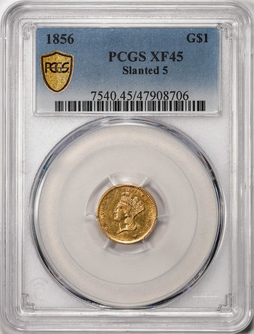 1856 Slanted 5 $1 Indian Princess Head Gold Dollar Coin PCGS XF45