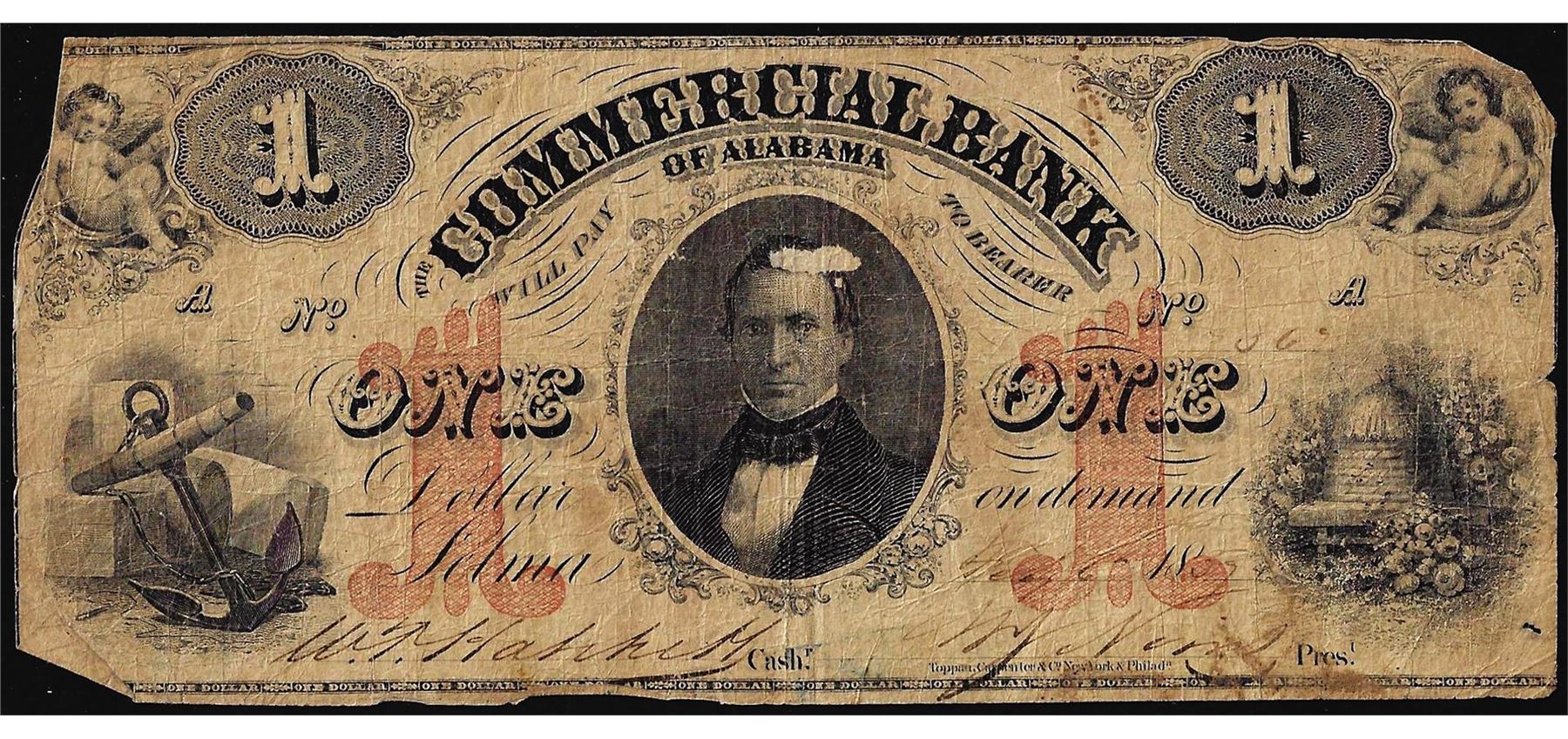 One 1857 $1 Commercial Bank of Alabama Selma Obsolete Note.