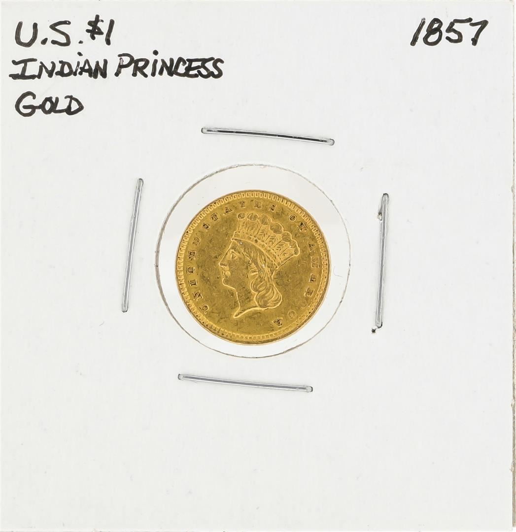 One 1857 $1 Indian Princess Head Gold Dollar Coin.