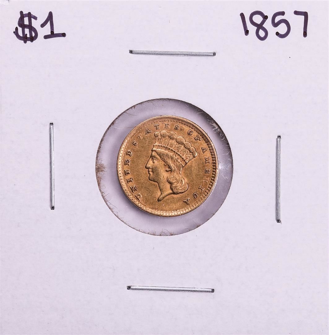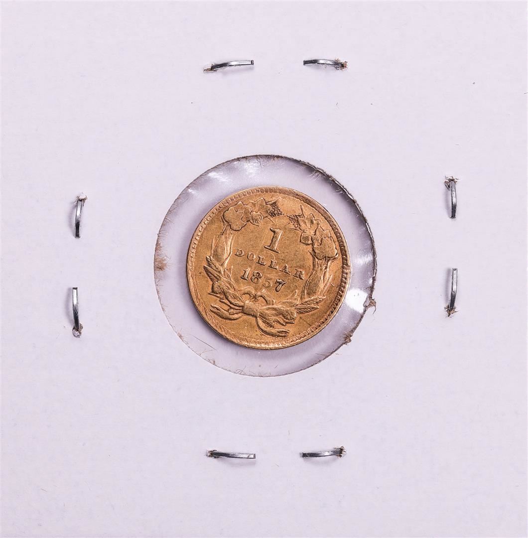 One 1857 $1 Indian Princess Head Gold Dollar Coin.