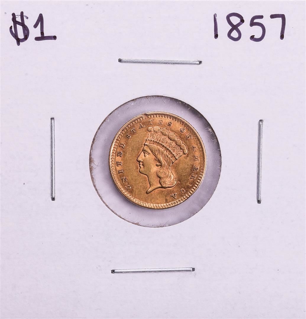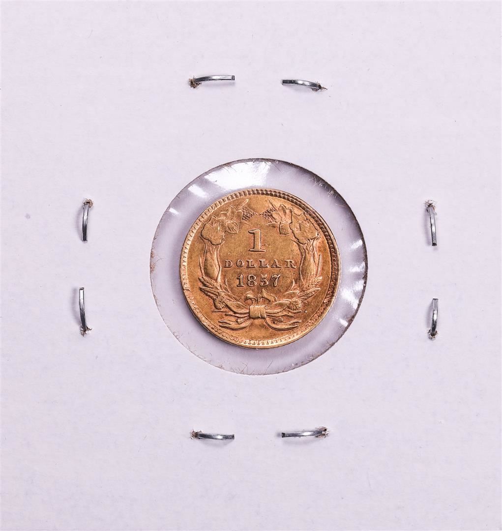 One 1857 $1 Indian Princess Head Gold Dollar Coin.
