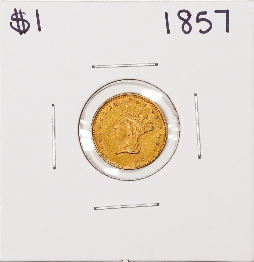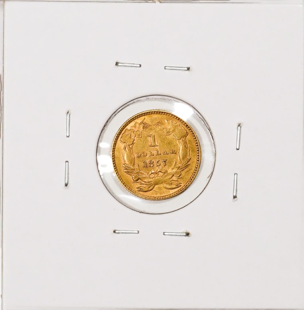One 1857 $1 Indian Princess Head Gold Dollar Coin.