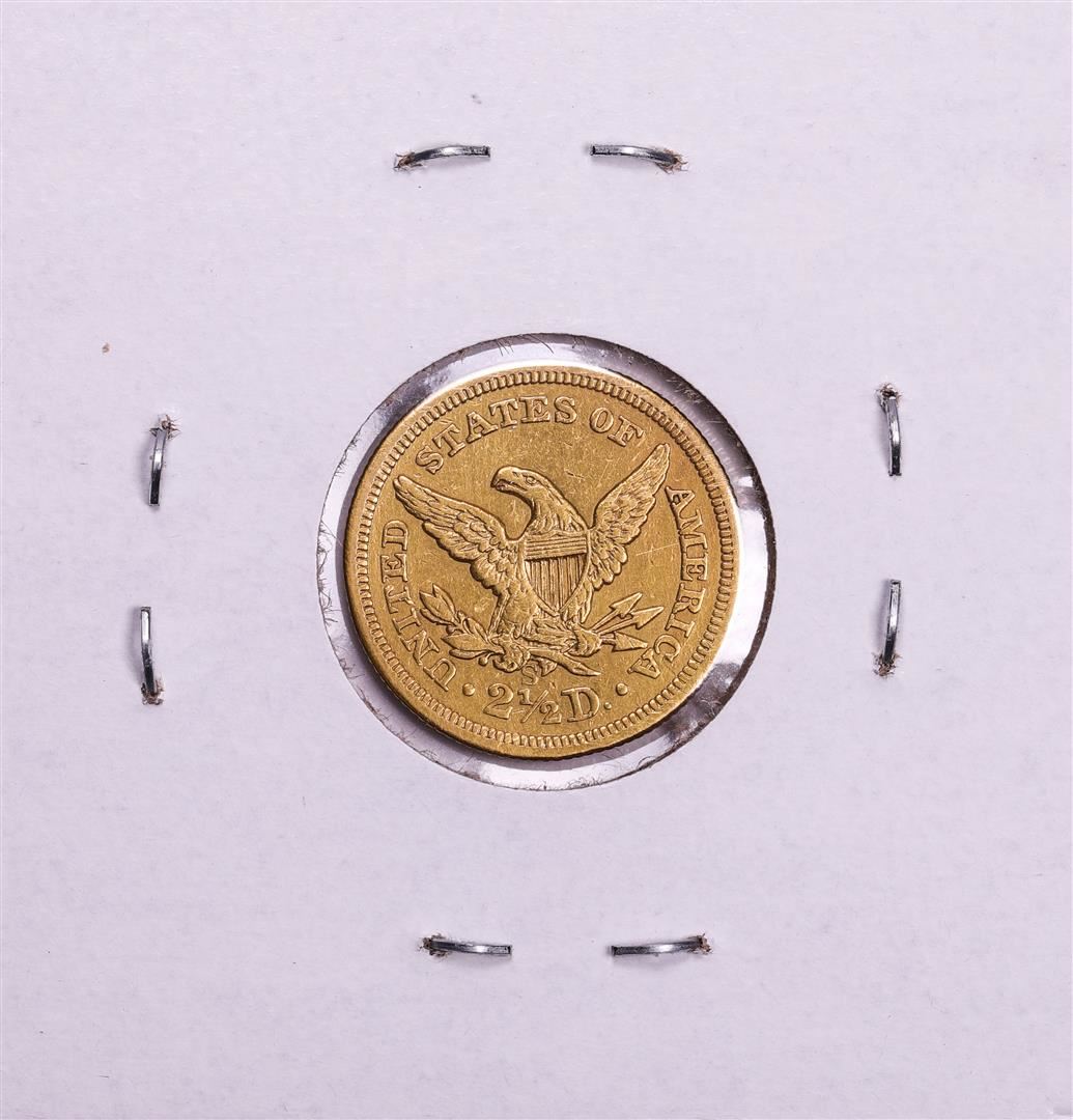 One 1857 $2 1/2 Liberty Head Quarter Eagle Gold Coin.