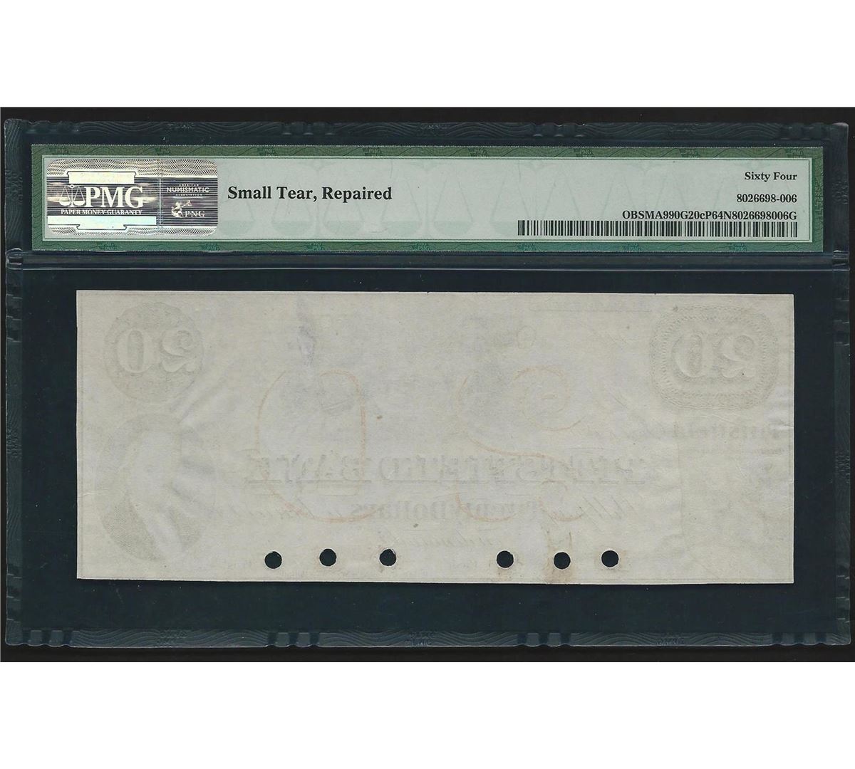 1857 $20 Pittsfield, MA Pittsfield Bank Proof Obsolete Bank Note PMG CU64 Net