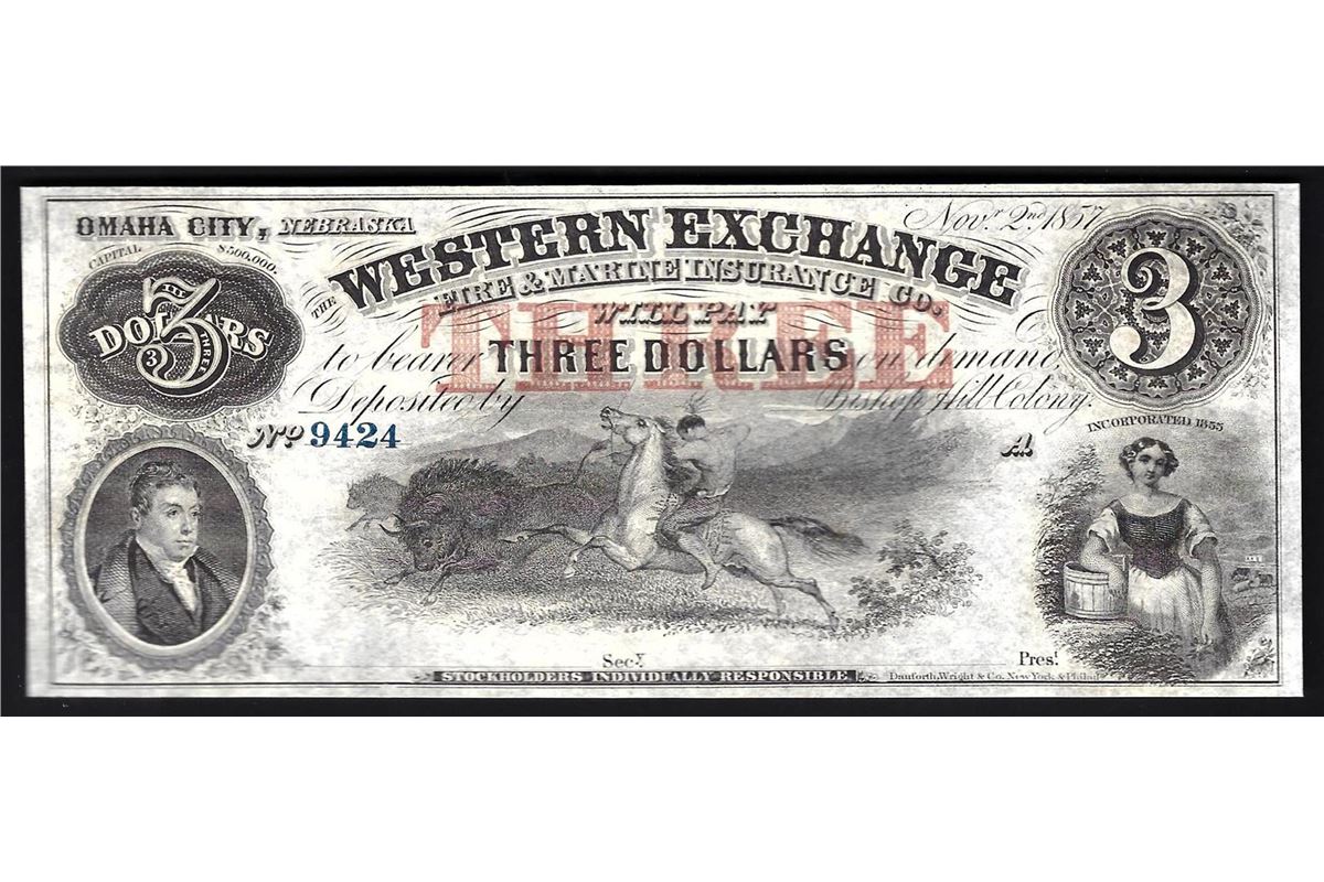 1857 $3 The Western Exchange Fire & Marine Insurance Co Obsolete Bank Note