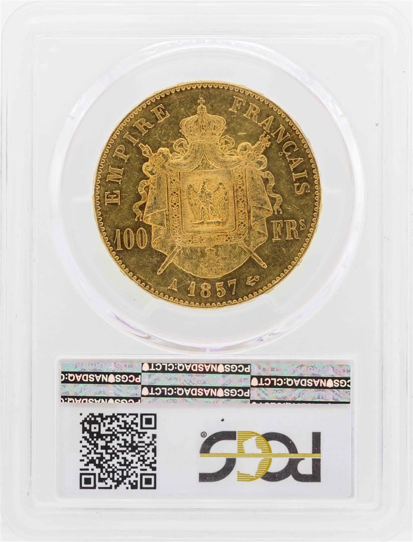 One 1857-A France 100 Francs Gold Coin Gad-1135 PCGS AU50. PCGS Graded.