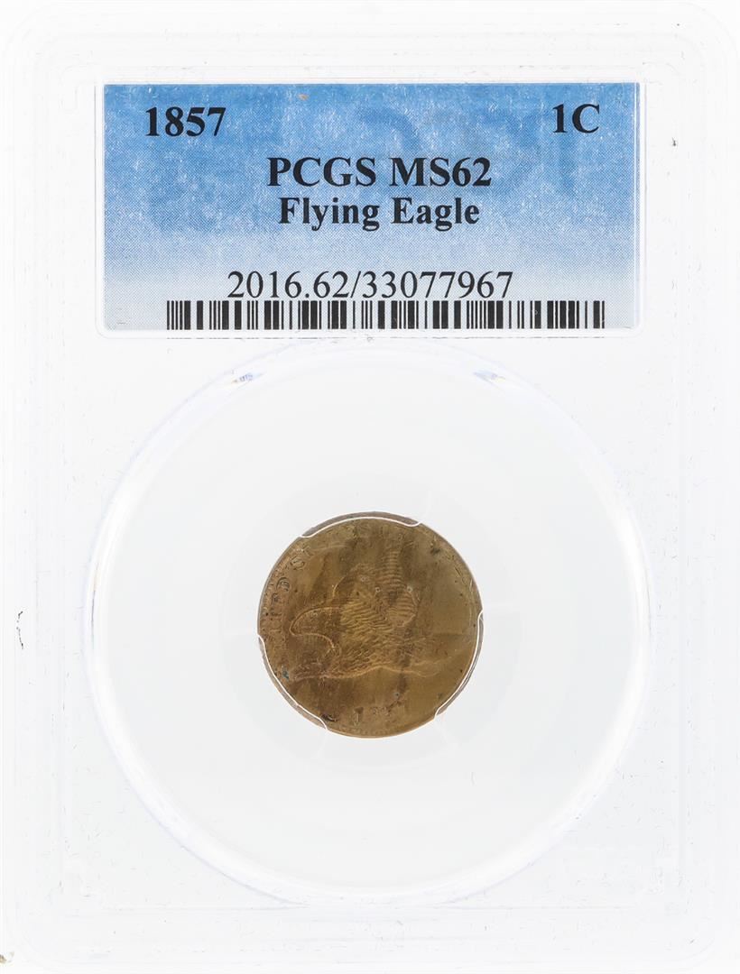 One 1857 Flying Eagle Cent PCGS Graded MS62. PCGS Graded.