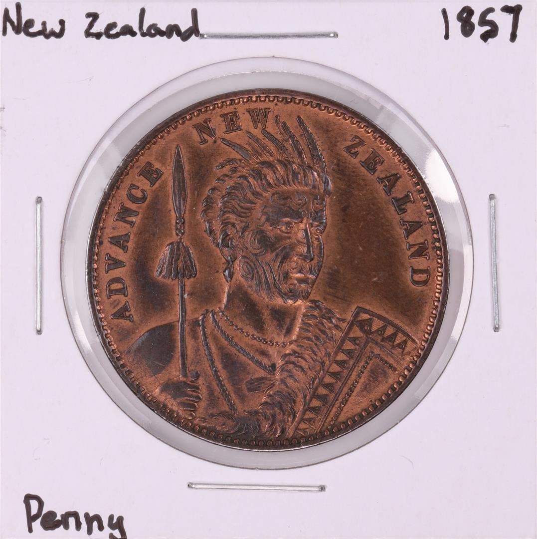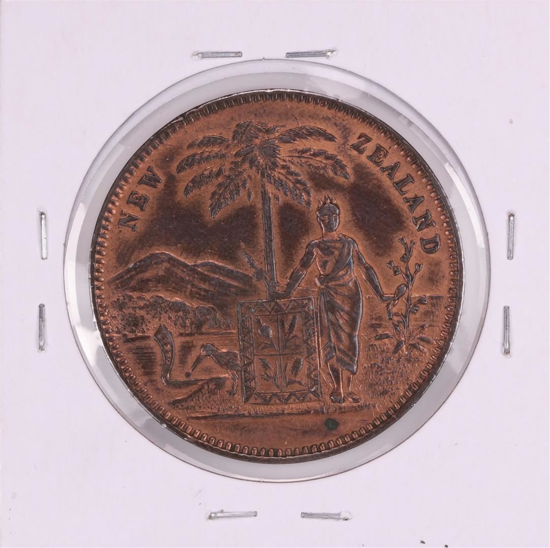 One 1857 New Zealand Miller and Thompson Penny Coin.