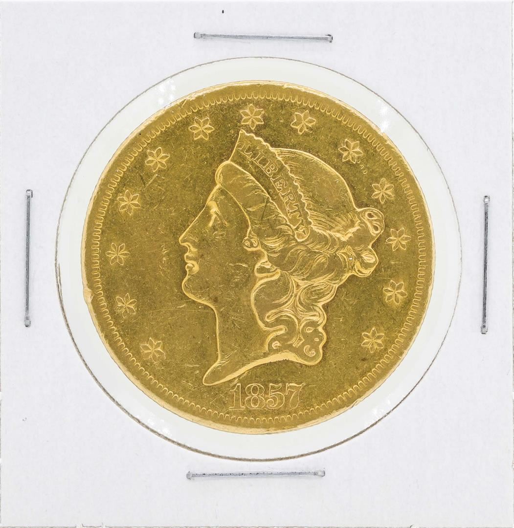 One 1857-S $20 Liberty Head Double Eagle Gold Coin.