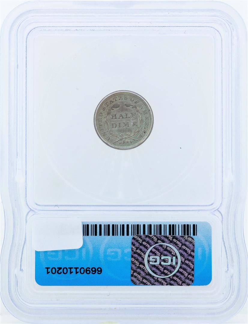 One 1857 Seated Liberty Half Dime Coin ICG MS62. ICG Certified.