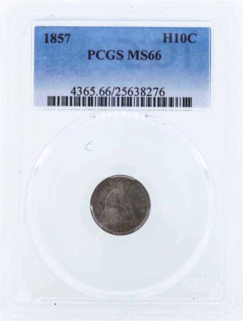 One 1857 Seated Liberty Half Dime Coin PCGS MS66. PCGS Graded.