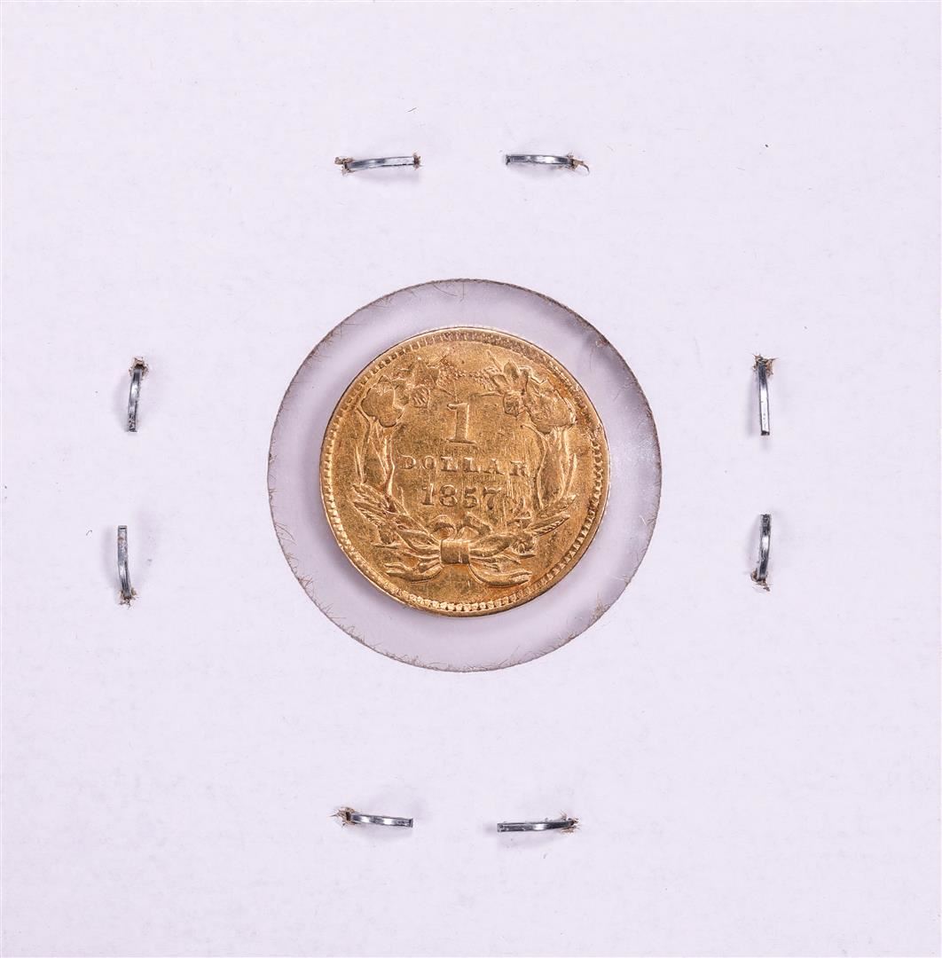 One 1857 Type 3 $1 Liberty Head Gold Dollar Coin.