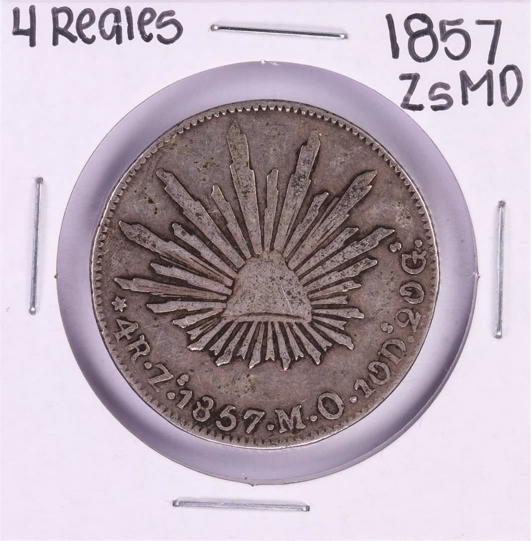 One 1857 ZsMO Mexico 4 Reales Silver Coin.