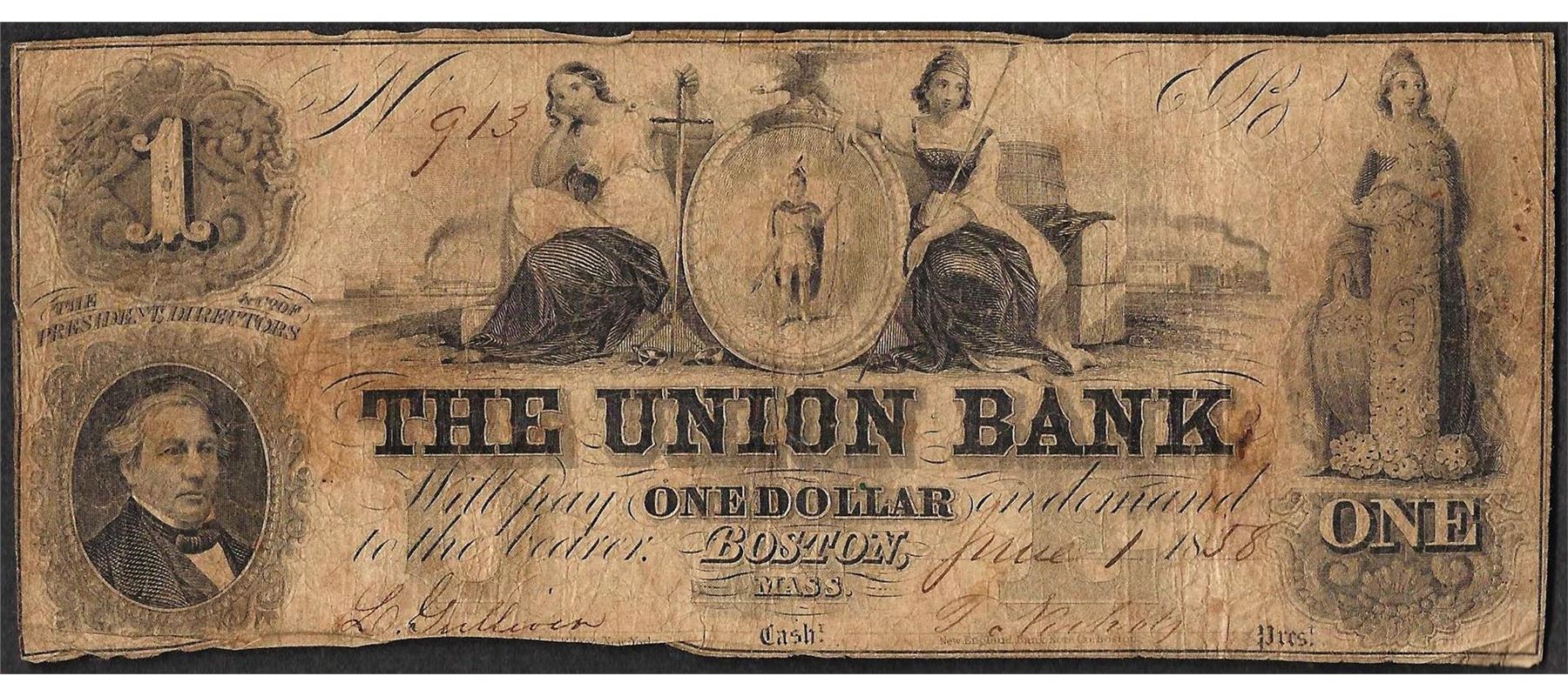 1858 $1 The Union Bank Boston, Massachusetts Obsolete Note