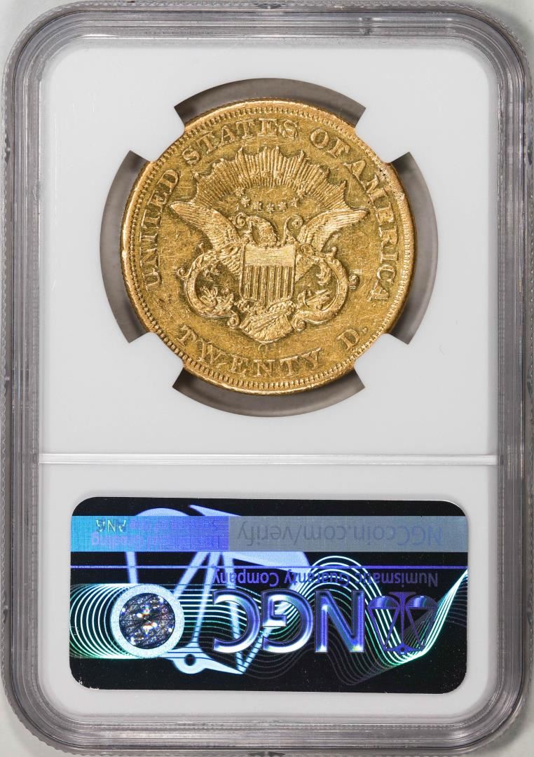 One Rare - 1858-O $20 Liberty Head Double Eagle Gold Coin NGC AU55. NGC Certified.