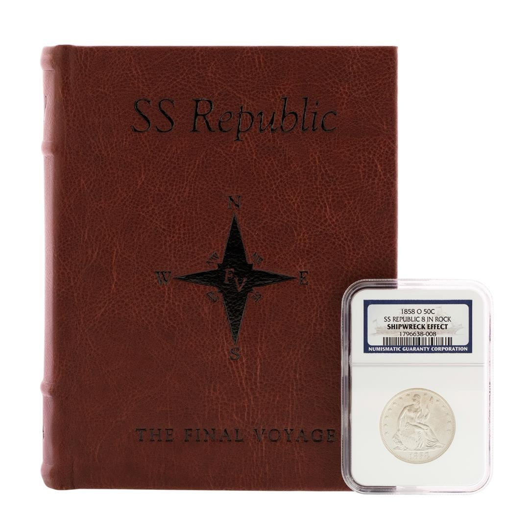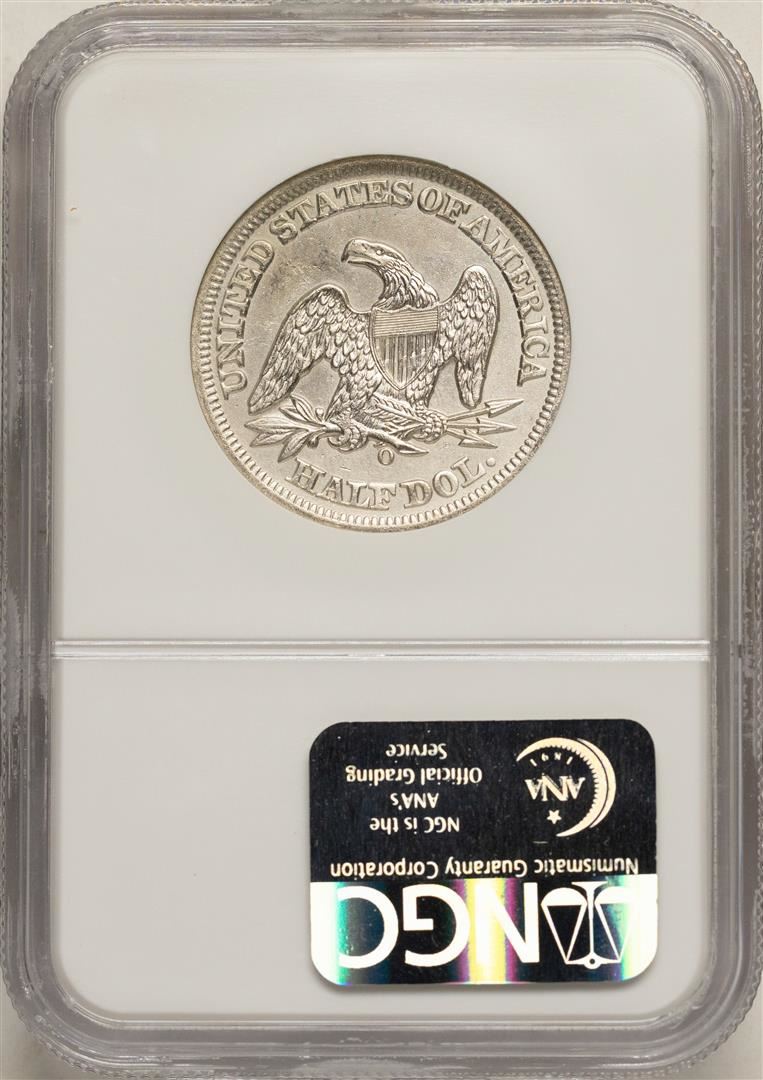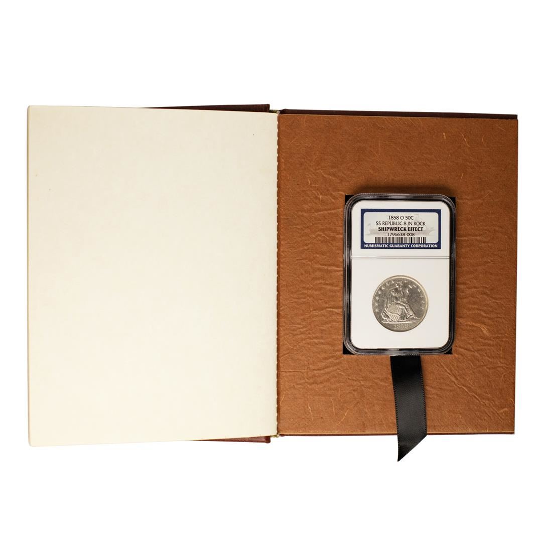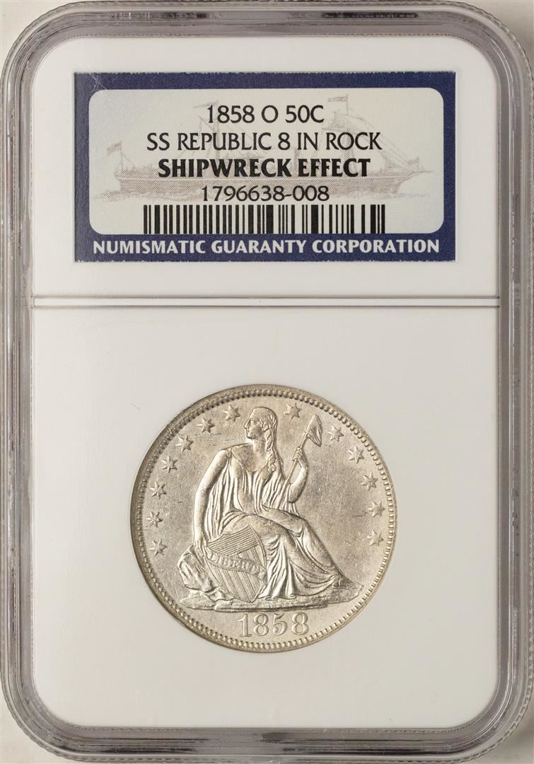 One 1858-O 8 in Rock Seated Liberty Half Dollar Coin NGC Shipwreck Effect w/ Book. NGC Certified.
