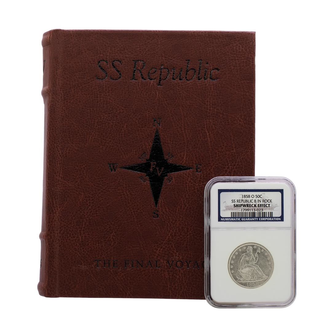 One 1858-O 8 in Rock Seated Liberty Half Dollar Coin NGC Shipwreck Effect w/ Book. NGC Certified.