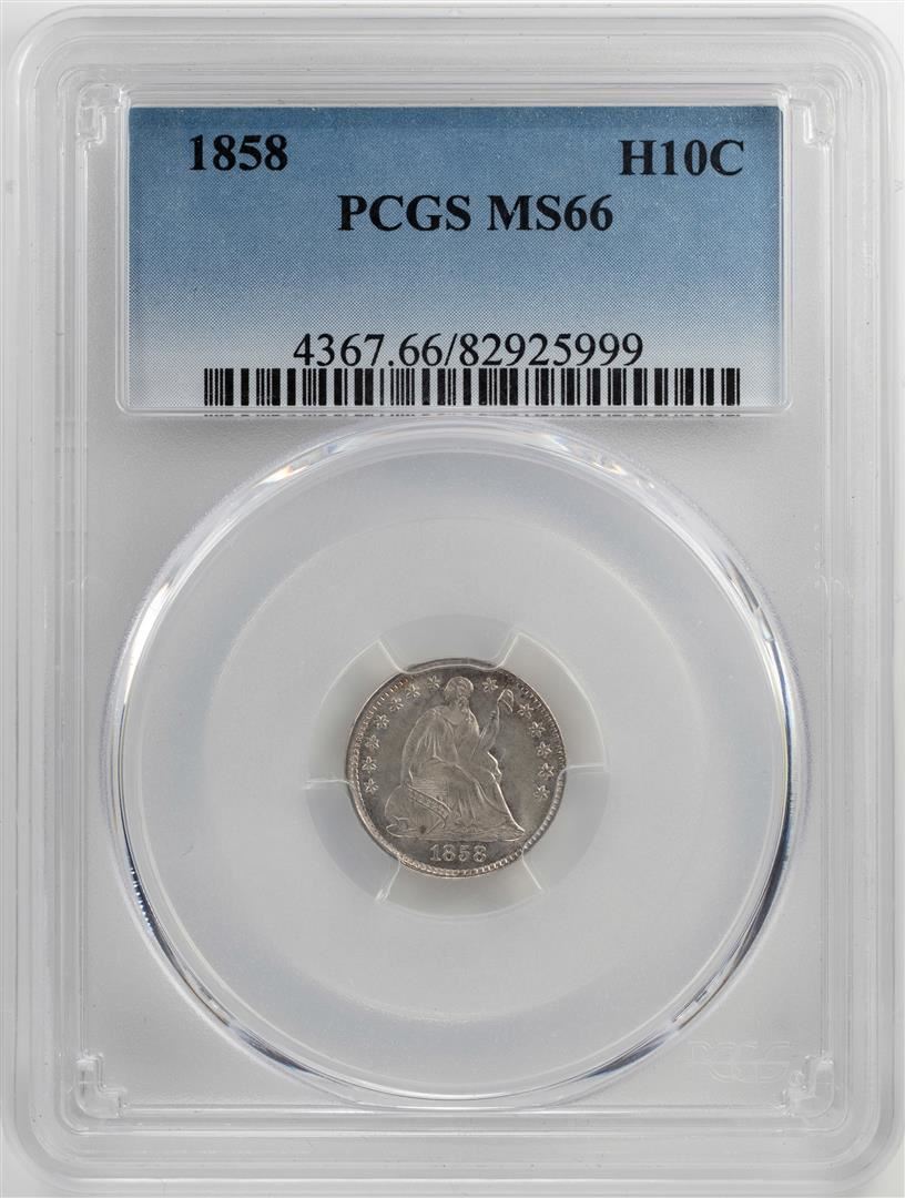 One 1858 Seated Liberty Half Dime Coin PCGS MS66. PCGS Graded.