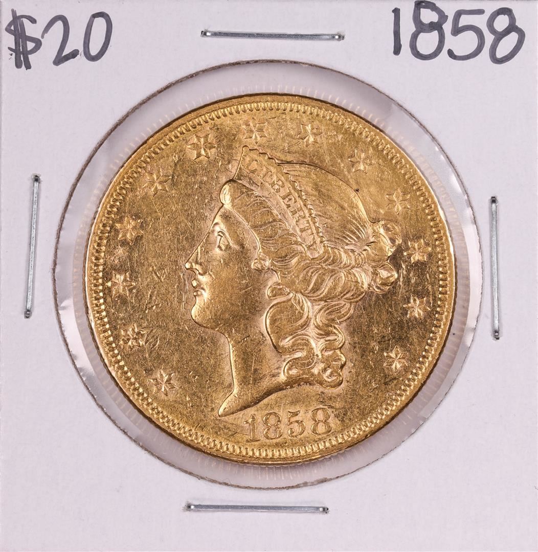 One 1858 Type 1 $20 Liberty Head Double Eagle Gold Coin.