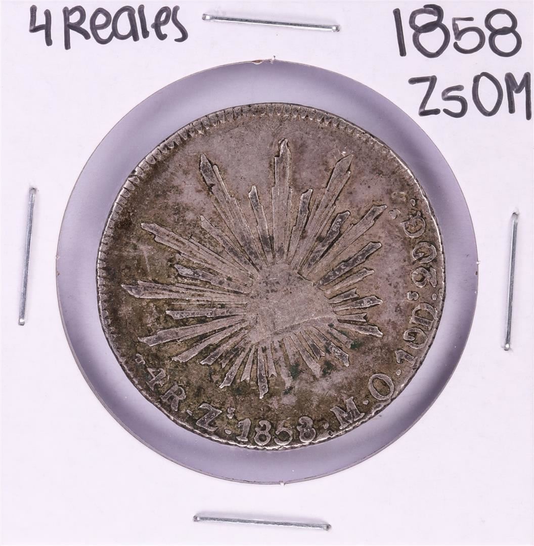 One 1858 ZsOM Mexico 4 Reales Silver Coin.