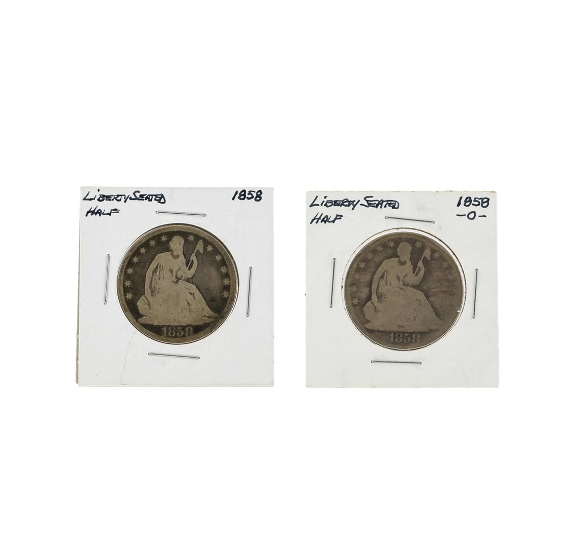 1858 and 1858-O Silver Seated Liberty Half Dollar Coin Set