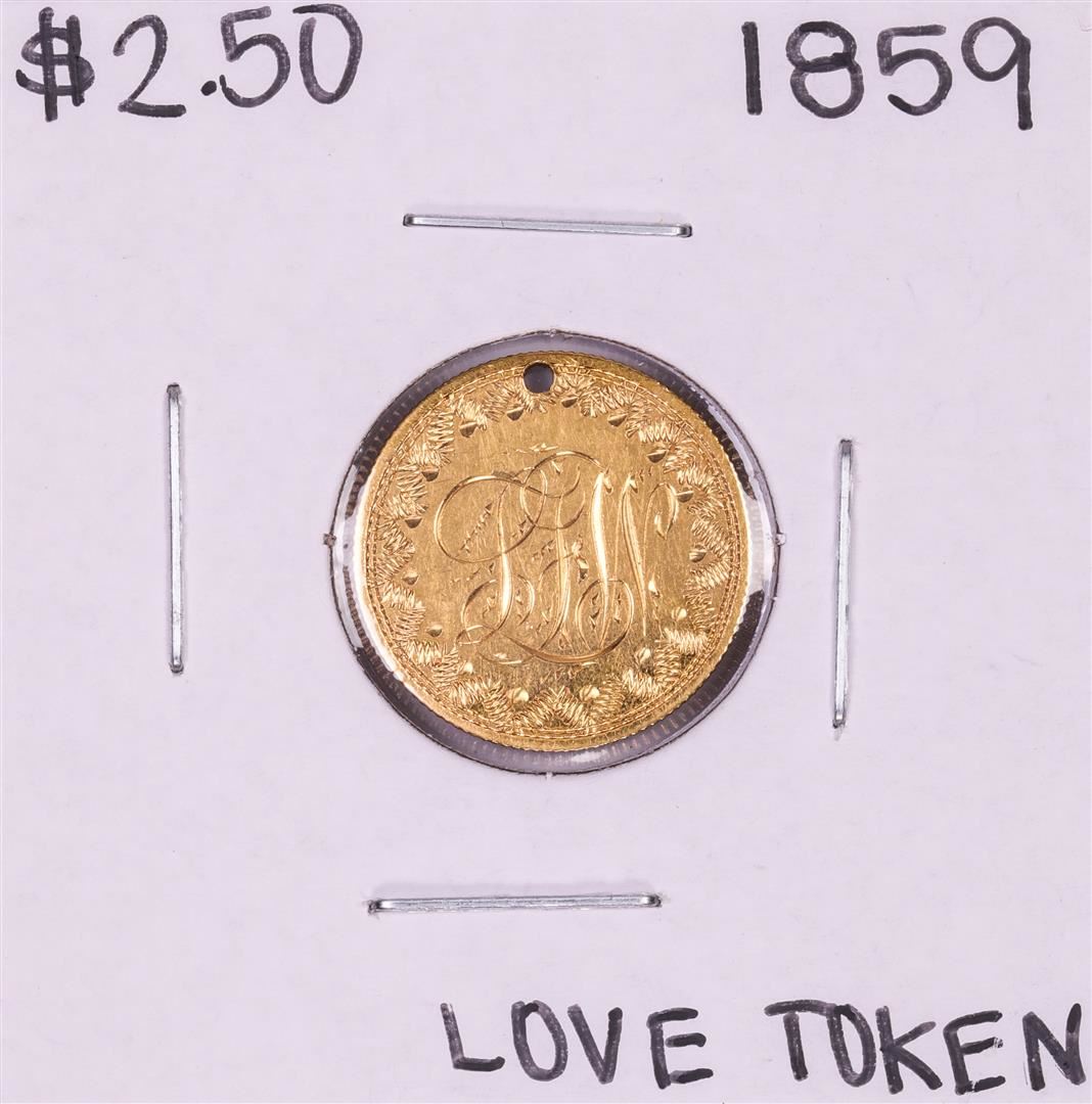 1859 $2 1/2 Liberty Head Quarter Eagle Gold Love Token Coin Holed