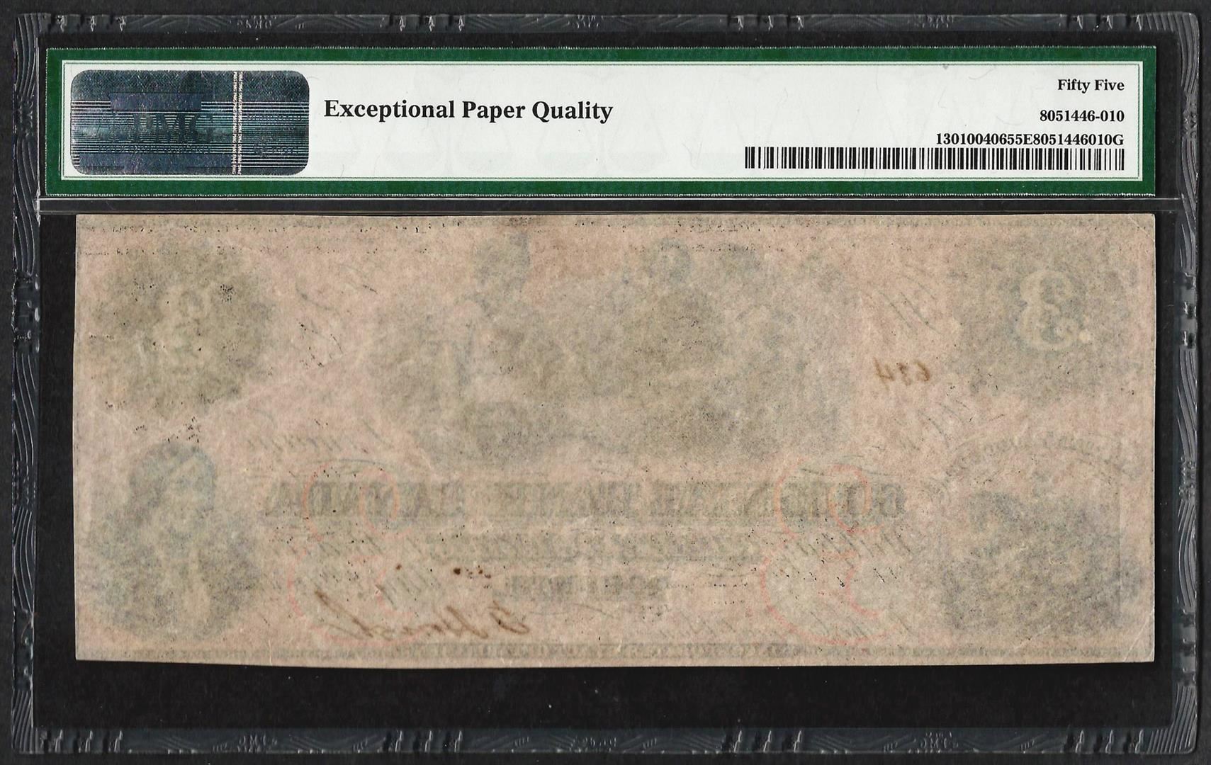One 1859 $3 Colonial Bank of Canada Note PMG About Uncirculated 55EPQ. PMG Certified.