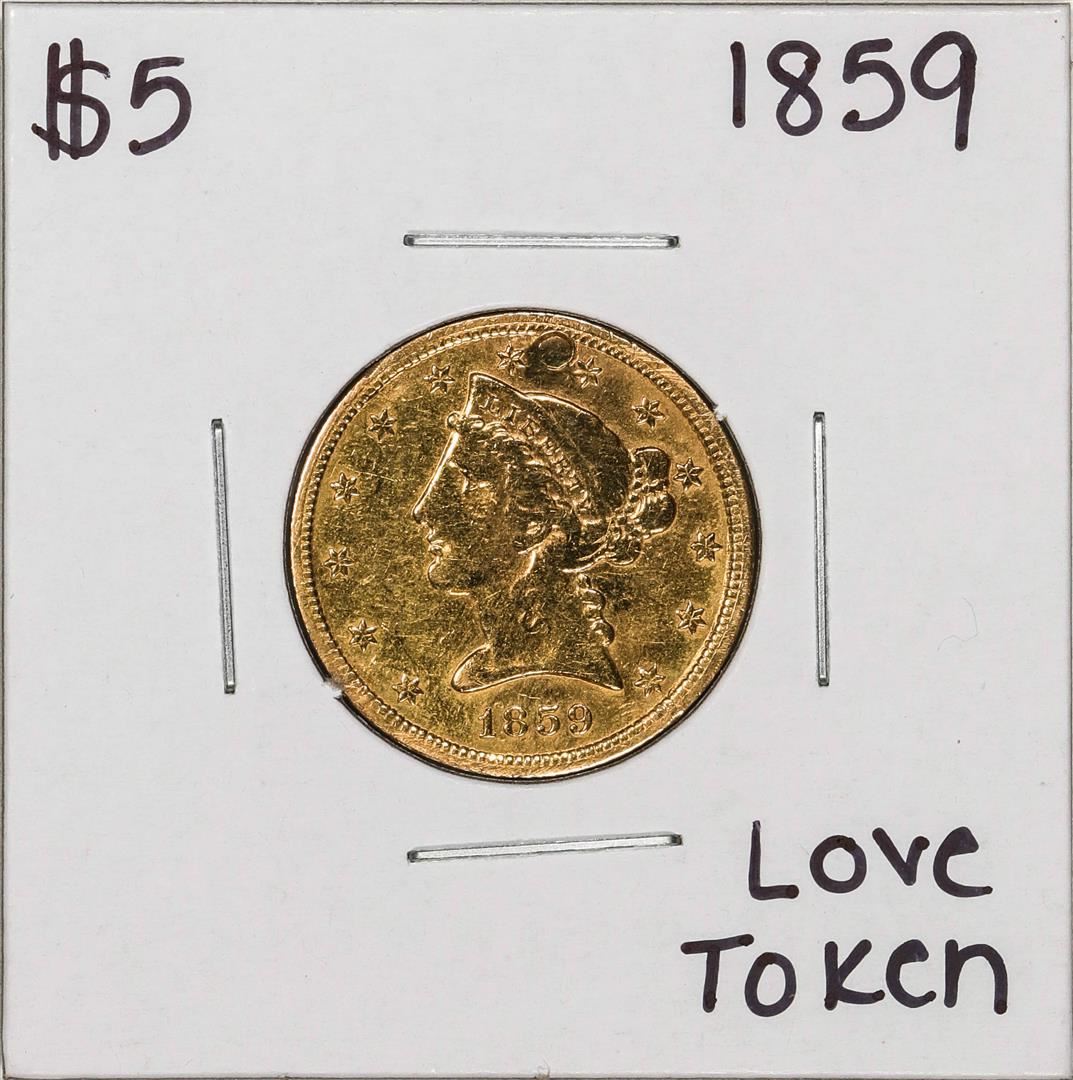 One 1859 $5 Liberty Head Half Eagle Gold Love Token Coin - Greta & Dick (1-24-54).