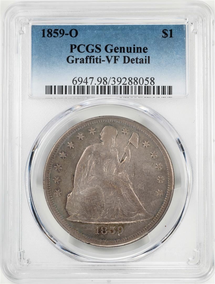 One 1859-O $1 Seated Liberty Silver Dollar Coin PCGS VF Details. PCGS Graded.