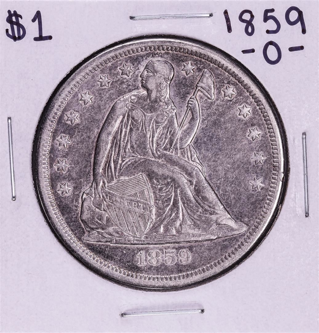 One 1859-O $1 Seated Liberty Silver Dollar Coin.